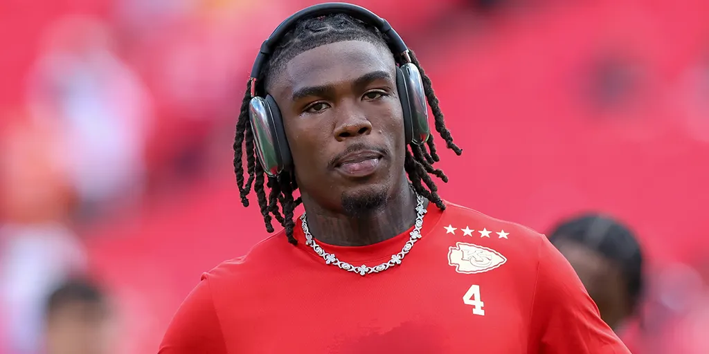 Kansas City Chiefs široki primač Rashee Rice prije utakmice protiv Baltimore Ravensa 5. septembra 2024. na GEHA Field na Arrowhead stadionu u Kanzas Cityju, Mo. (Scott Winters/Icon Sportswire preko Getty Images)